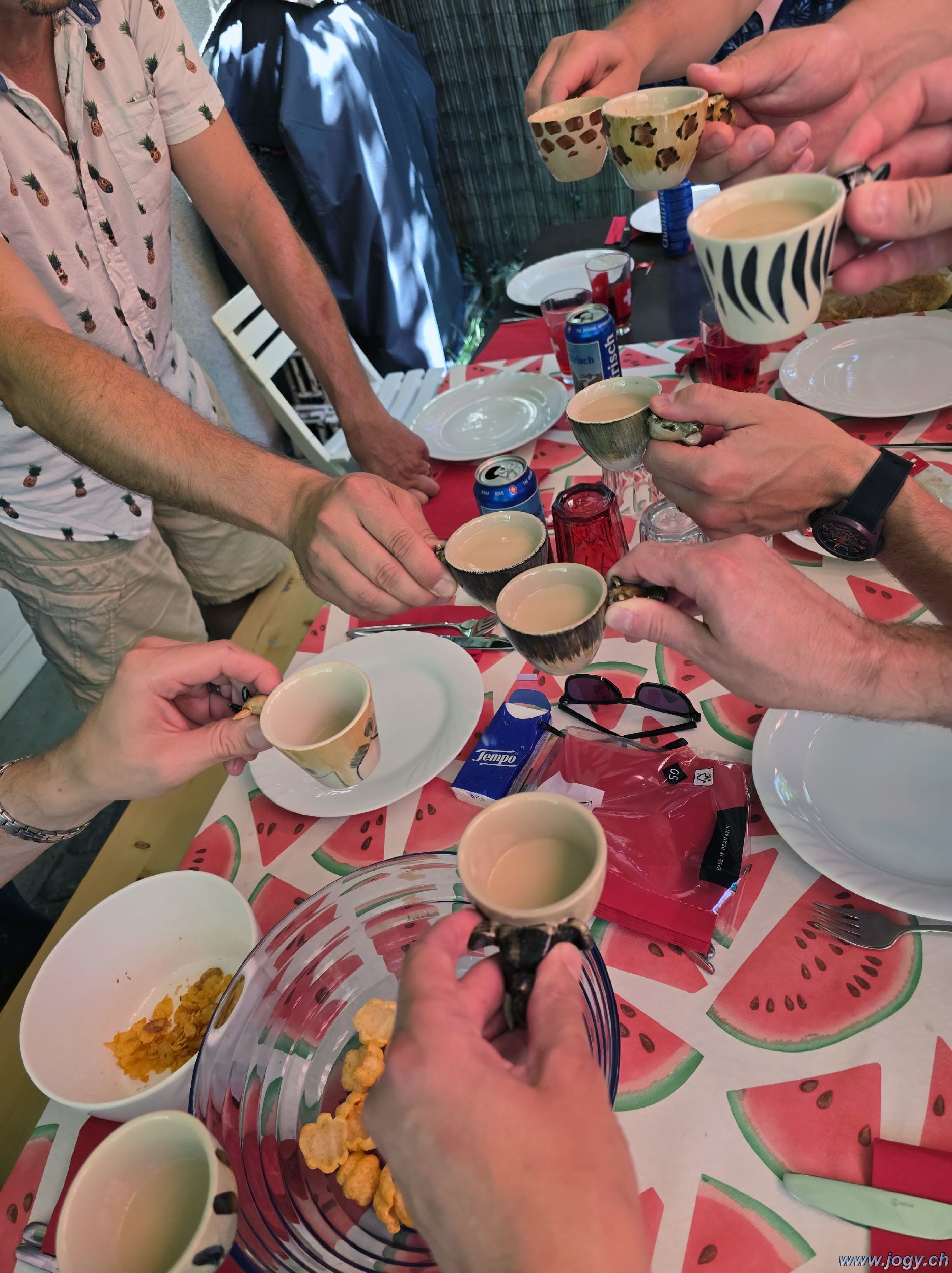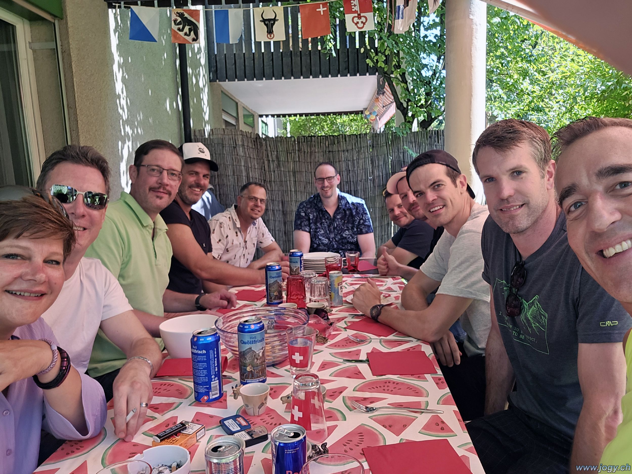 Auf den 9. August hatte man sich schon lange wieder gefreut, denn eine neue Street Parade stand auf dem Plan. Wie immer gab es zuerst einen reichhaltigen Apéro mit feinem Fleisch von Grill und auch die Kehlen wurden der Hitze angemessen befeuchtet.